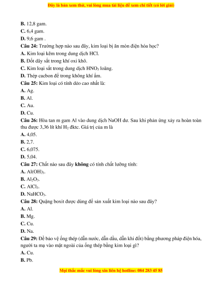 Câu 5: Al có thể tan được trong dung dịch nào sau: A. KNO3. B. K2SO4. C. KOH.