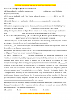 - V. Choose the word or phrase among A, B, C or D that best fits the blank space in the following passage.