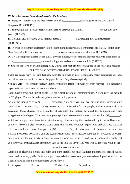 English learning tool that complements your lifestyle. 21. A. upload B. post C. download D. produce