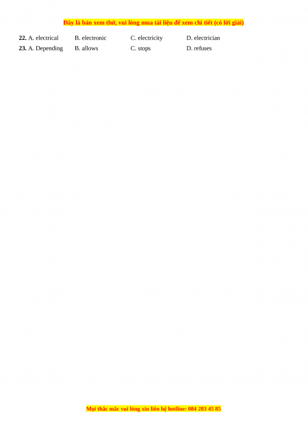 22. A. electrical B. electronic C. electricity D. electrician 23. A. Depending B. allows C. stops D. refuses