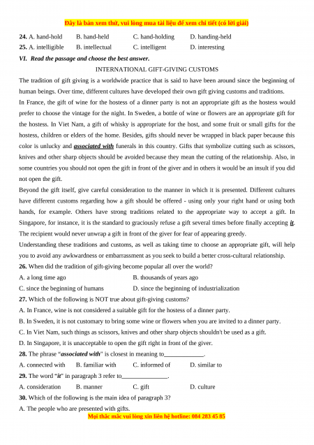 - Đáp án: This is the best book about cultural diversity I have ever read.