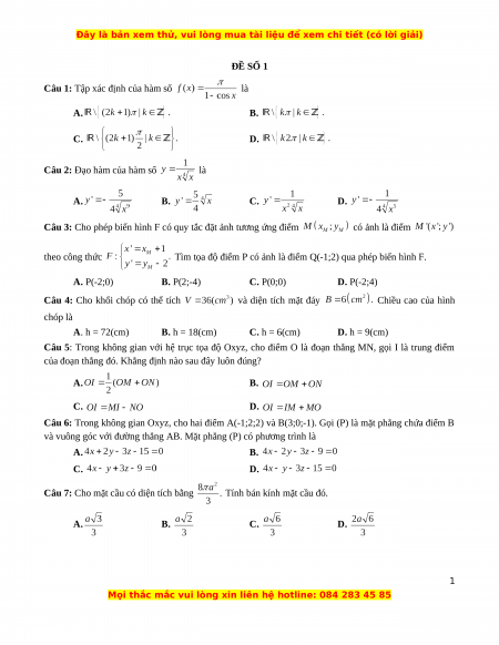Đây là bản xem thử, vui lòng mua tài liệu để xem chi tiết (có lời giải)