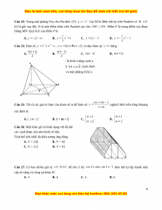 Câu 22: Trong mặt phẳng Oxy cho Parabol Gọi M là điểm bất kỳ trên Parabol và