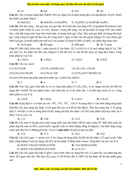 Câu 29: Cho 18,5 gam chất hữu cơ A có công thức phân tử C3H11O6N3. A tác dụng vừa đủ với 300 ml