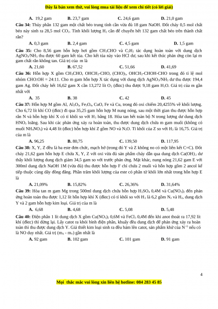 Câu 35: Cho 8,56 gam hỗn hợp hơi gồm CH3CHO và C2H2 tác dụng hoàn toàn với dung dịch