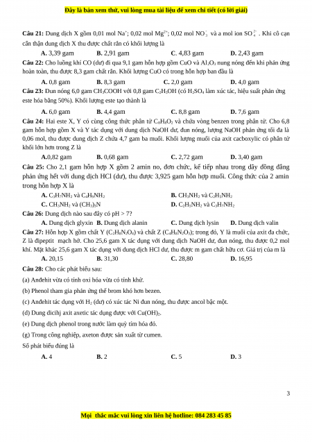 Câu 21: Dung dịch X gồm 0,01 mol Na+; 0,02 mol Mg2+; 0,02 mol NO và a mol ion SO . Khi cô cạn