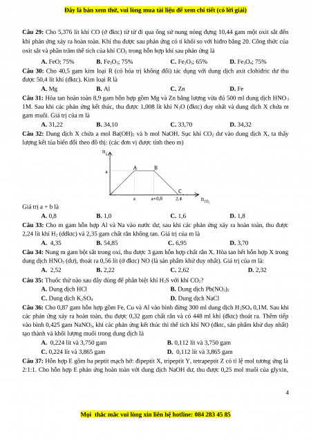 Câu 32: Dung dịch X chứa a mol Ba(OH)2 và b mol NaOH. Sục khí CO2 dư vào dung dịch X, ta thấy