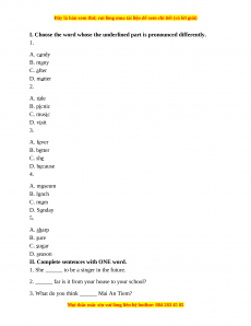I. Choose the word whose the underlined part is pronounced differently. 1. B 2. A 3. B 4. A 5. D