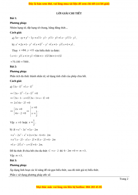 Để đa thức B chia hết cho đa thức thì . Vậy . Bài 3: Phương pháp: