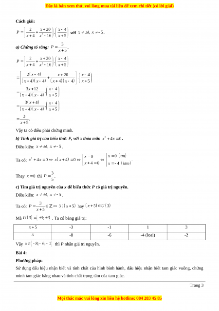 thì P nhận giá trị nguyên. Bài 4: Phương pháp: