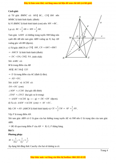 BG đi qua trung điểm F của AN B, G, F thẳng hàng. Bài 5: Phương pháp: