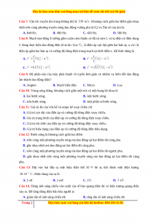 Câu 8: Mạch dao động lí tưởng gồm cuộn cảm thuần có độ tự cảm L và tụ điện có điện dung