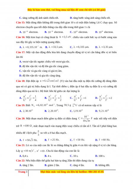Đây là bản xem thử, vui lòng mua tài liệu để xem chi tiết (có lời giải)