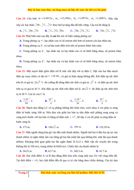 Trang 1 Mọi thắc mắc vui lòng xin liên hệ hotline: 084 283 45 85