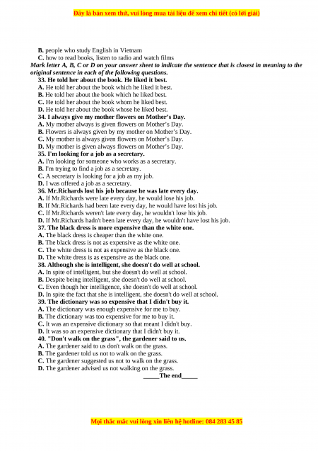 Chúng tôi đảm bảo đủ số lượng đề đã cam kết hoặc có thể nhiều hơn, tất cả có BẢN WORD, LỜI GIẢI CHI TIẾT và tải về dễ dàng.