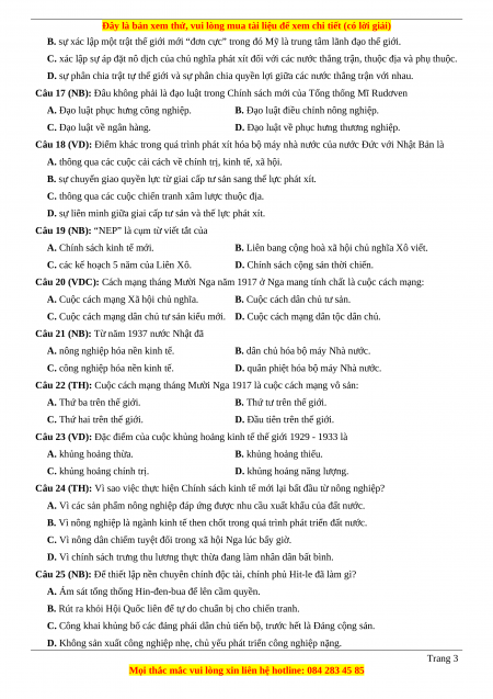 Câu 30 (TH): Vì sao chủ nghĩa phát xít lại thắng thế ở Đức? Đáp án 1-C 2-B 3-C 4-C 5-D 6-A 7-D 8-D 9-C 10-A 11-A 12-B 13-C 14-A 15-C 16-A 17-D 18-B 19-A 20-A 21-D 22-D 23-A 24-D 25-C 26-A 27-A 28-C LỜI GIẢI CHI TIẾT