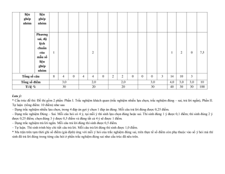 * Ma trận trên tạm thời ghi số điểm (giả định) ứng với mỗi ý hỏi của trắc nghiệm đúng sai, trên thực tế số điểm còn phụ thuộc vào số ý hỏi mà thí