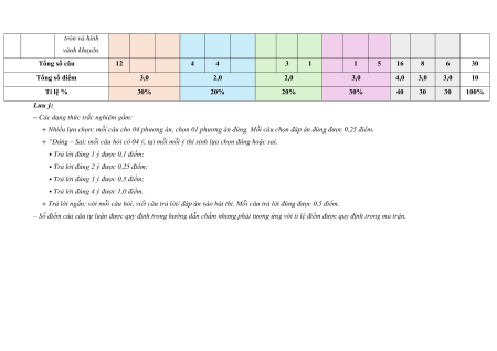 – Số điểm của câu tự luận được quy định trong hướng dẫn chấm nhưng phải tương ứng với tỉ lệ điểm được quy định trong ma trận.