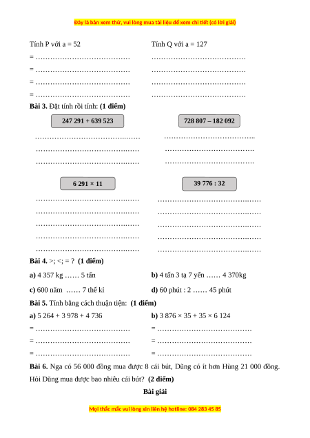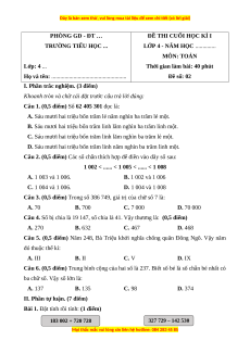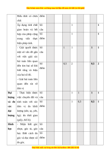 nhiên. (bé đến lớn Số 0,5 0,5 hoặc ngược lại). điểm - Làm tròn số tự Số 1 1 nhiên đến hàng câu trăm nghìn Số 0,5 0,5 điểm - Thực hiện được Số 1 1 1 1 các phép tính cộng, câu trừ, nhân, chia các Số 0,5 1 0,5 1