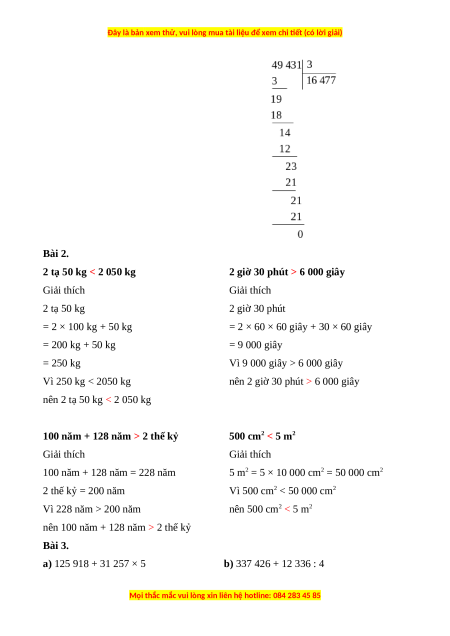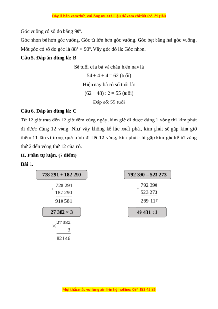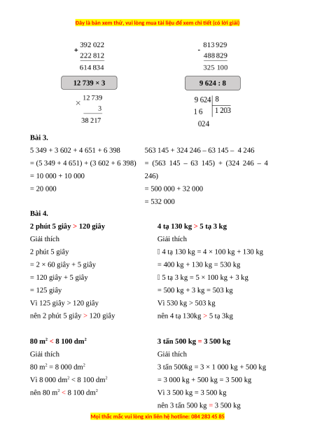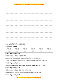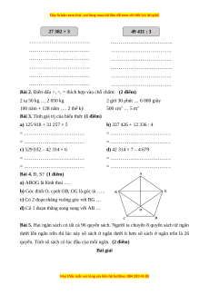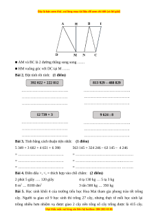 Câu 4. Trong số 98 292 437, giá trị của chữ số 9 gấp giá trị của chữ số 3 là: (0,5 điểm) A. 3 000 000 lần B. 300 000 lần C. 3 000 lần D. 30 000 000 lần