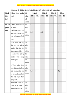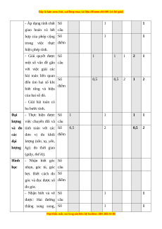 nhiên. (bé đến lớn Số hoặc ngược lại). điểm - Làm tròn số tự Số nhiên đến hàng câu trăm nghìn Số điểm - Thực hiện được Số 1 1 1 1 các phép tính cộng, câu trừ, nhân, chia các Số 0,5 1 0,5 1