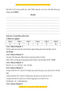 Câu 2. Năm 1789, vua Quang Trung đại phá quân Thanh, năm đó thuộc thế kỉ: (0,5 điểm) A. XVII B. IXX C. XV D. XVIII