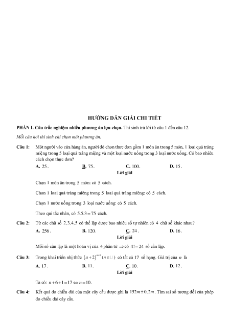 Câu 1: Một người vào cửa hàng ăn, người đó chọn thực đơn gồm 1 món ăn trong 5 món, 1 loại quả tráng