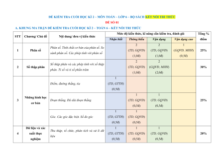 A. KHUNG MA TRẬN ĐỀ KIỂM TRA CUỐI HỌC KÌ 2 – TOÁN 6 – KẾT NỐI TRI THỨC