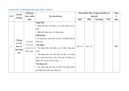 B. BẢN ĐẶC TẢ ĐỀ KIỂM TRA HỌC KÌ II – TOÁN 7 Nội dung/
