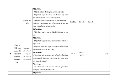 - Nhận biết được biểu thức đại số. thức đại Biểu thức Thông hiểu: 2 Bài 2.1 25% số và đa đại số