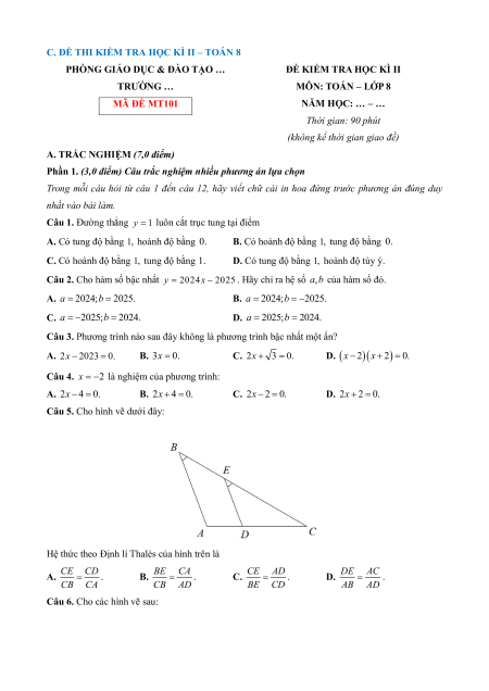 - Tailieugiaovien.com.vn giới thiệu bộ 15 đề cuối kì 2 gồm 5 đề Cấu trúc mới 2025 và 10 đề năm 2024 có đầy đủ ma trận và lời giải chi tiết môn Toán 8 Chân trời sáng tạo nhằm giúp Giáo viên có thêm tài liệu tham khảo ra đề thi Toán lớp 8.