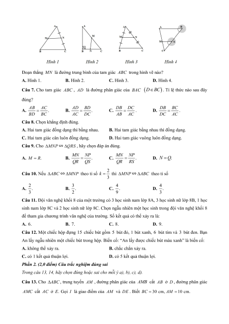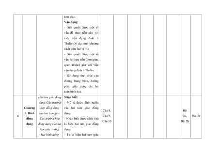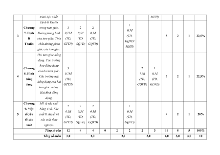 chất đường phân GTTH) GQVĐ) GQVĐ) MHH) giác của tam giác. Hai tam giác đồng dạng. Các trường hợp đồng dạng Chương 3 2 1 của hai tam giác. 8. Hình 0,75đ 1,0đ 0,5đ 4 Các trường hợp 3 2 1 22,5% đồng (TD, (TD, (TD,