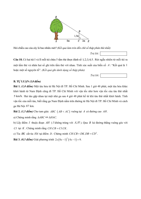 => Tham khảo thêm: Bộ 15 đề thi cuối kì 2 Toán 8 Chân trời sáng tạo Cấu trúc mới có tự luận