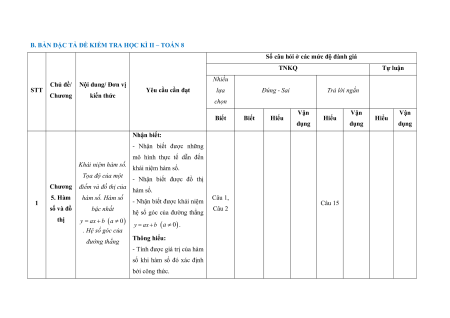 B. BẢN ĐẶC TẢ ĐỀ KIỂM TRA HỌC KÌ II – TOÁN 8