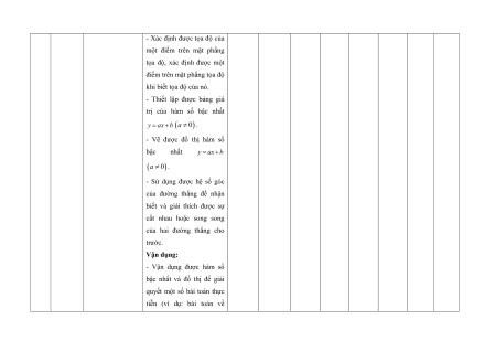 Chủ đề/ Nội dung/ Đơn vị lệ % STT lựa Đứng - Sai Trả lời ngắn Chương kiến thức điểm chọn Vận Vận Vận Vận Biết Biết Hiểu Hiểu Hiểu Biết Hiểu Tổng dụng dụng dụng dụng Khái niệm hàm số. Tọa độ của một