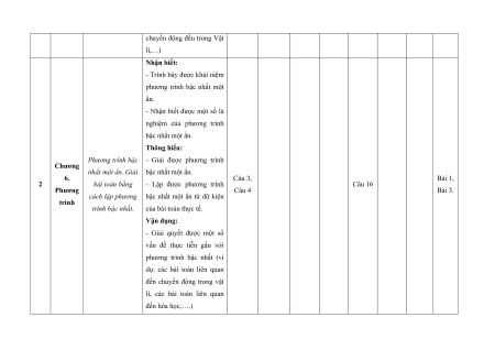 cách lập phương GTTH) GQVĐ) GQVĐ/ trình bậc nhất. MHH) Định lí Thalès 1 Chương trong tam giác. 3 2 2 0,5đ