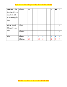 Hình học: Kiểm Số điểm 0,5 1 1 0,5 2 đếm, lắp ghép các hình, khối, tính độ dài đường gấp khúc. Một số yếu tố Số câu 1 1 thống kê và xác suất. Số điểm 1 1 Tổng Số câu 5 1 4 2 6 6 Số điểm 2,5 0,5 5 2 3 7