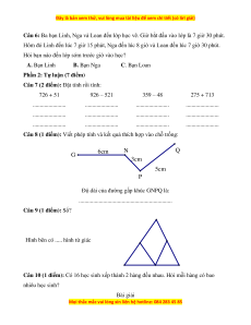 Câu 7 (2 điểm): Đặt tính rồi tính: 726 + 51 926 – 521 359 – 48 275 + 713 ....................... ....................... ....................... ....................... ....................... ....................... ....................... ....................... ....................... ....................... ....................... .......................