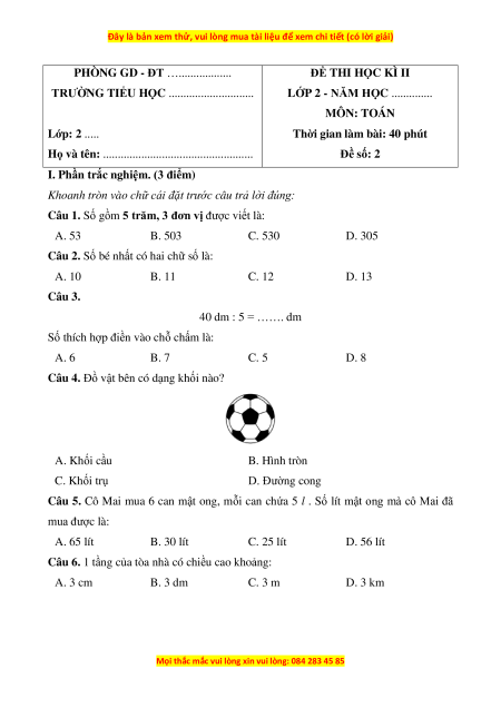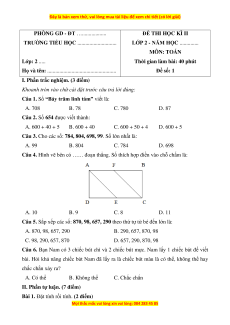 LỚP 2 - NĂM HỌC .............. MÔN: TOÁN Lớp: 2 .....