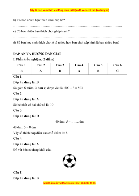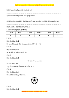 I. Phần trắc nghiệm. (3 điểm) Câu 1 Câu 2 Câu 3 Câu 4 Câu 5 Câu 6 A C B A C B Câu 1.