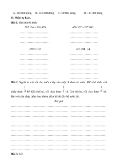 Bài 2. Người ta mở vòi cho nước chảy vào một bể chưa có nước. Giờ thứ nhất, vòi