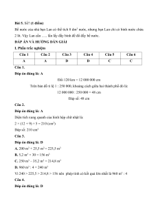 Câu 3. Trong các phép tính dưới đây, phép tính có kết quả lớn nhất là: (0,5 điểm) A. 200 m3 + 25,5 m3 B. 5,2 m3 × 30 C. 250 m3 – 35,2 m3 D. 960 m3 : 4