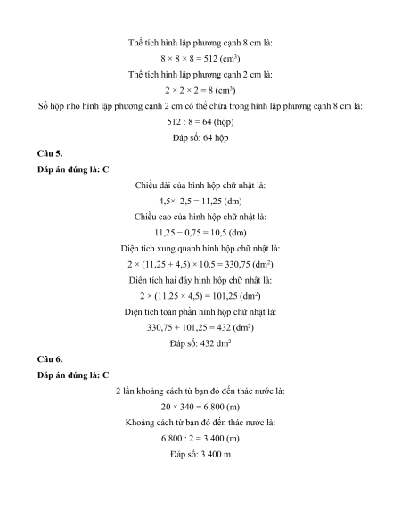 Câu 4. Một hình lập phương cạnh 8 cm có thể chứa tối đa bao nhiêu hộp nhỏ hình lập