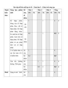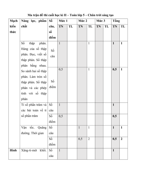 Ma trận đề thi cuối học kì II – Toán lớp 5 – Chân trời sáng tạo