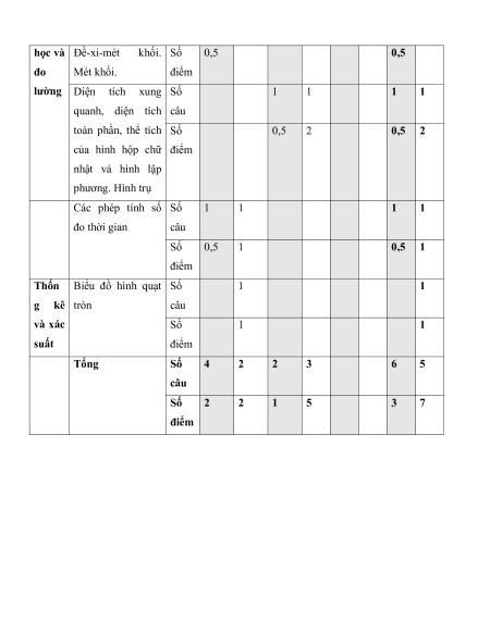 của hình hộp chữ điểm nhật và hình lập phương. Hình trụ Các phép tính số Số 1 1 1 1 đo thời gian câu Số 0,5 1 0,5 1 điểm