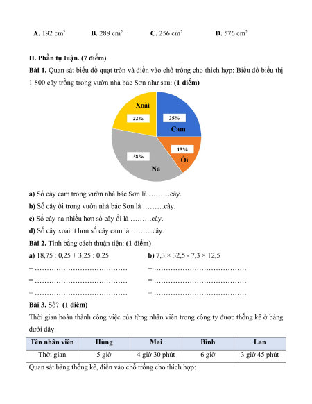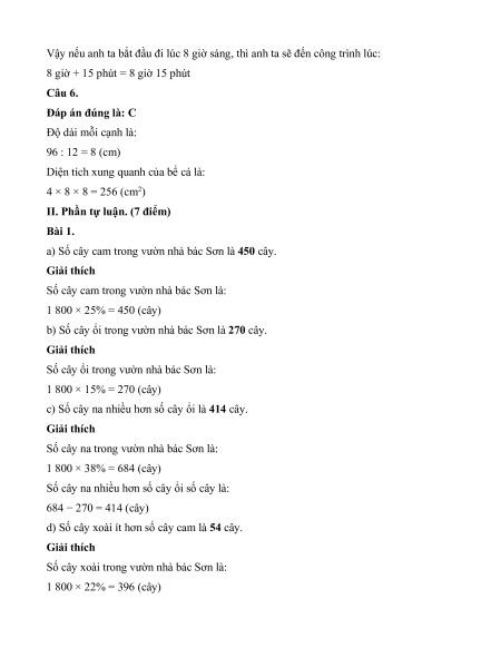 1 800 cây trồng trong vườn nhà bác Sơn như sau: (1 điểm) Xoài Cam Ổi Na