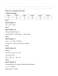 Câu 1. Số thập phân 5,67 gấp 100 lần số thập phân nào dưới đây? (0,5 điểm) A. 0,0567 B. 567 C. 0,00567 D. 0,567