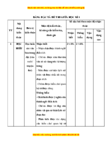 BẢNG ĐẶC TẢ ĐỀ THI GIỮA HỌC KÌ 1