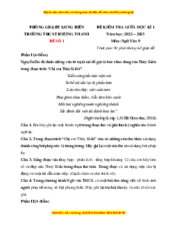 Bộ 15 đề thi giữa kì 1 Ngữ văn 9 có đáp án