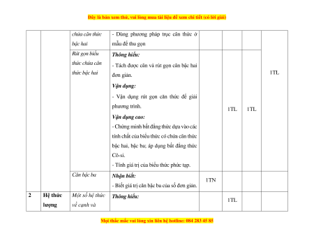 - Biết giá trị căn bậc ba của số đơn giản. 2 Hệ thức Một số hệ thức Thông hiểu: 1TL lượng về cạnh và